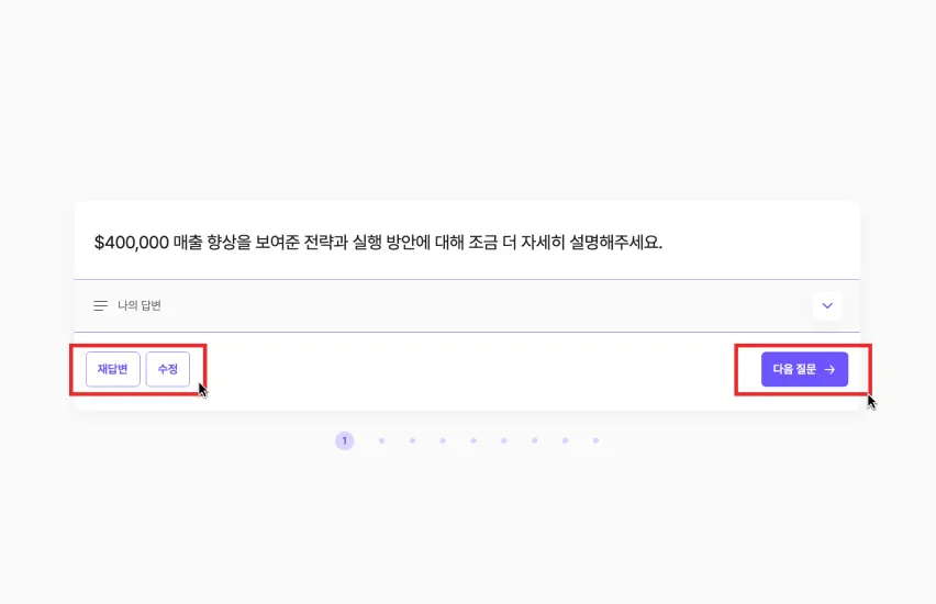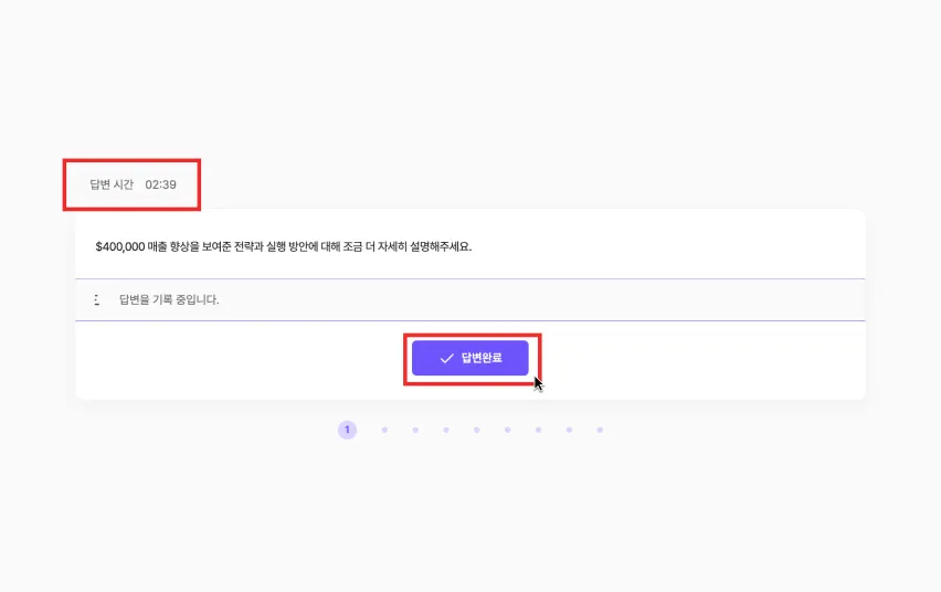 [면접 종료] 버튼을 누르고, [피드백 받기] 버튼을 눌러 피드백을 확인하세요.