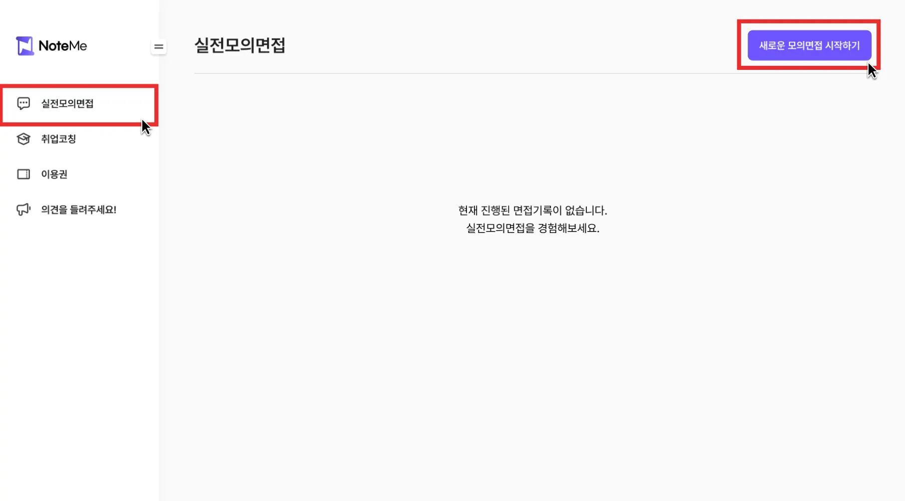 2. [새로운 모의면접 시작하기] 선택